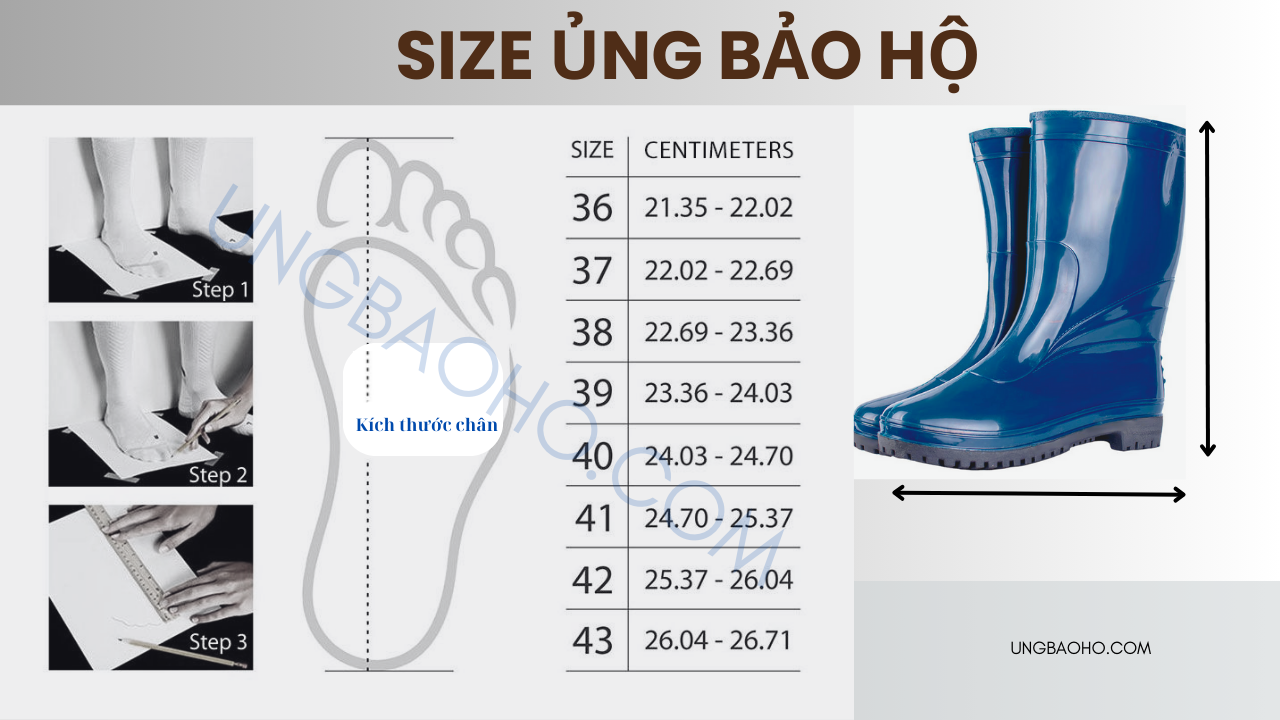 Kích thước cũng quyết định khả năng bảo vệ của ủng bảo hộ cao su.